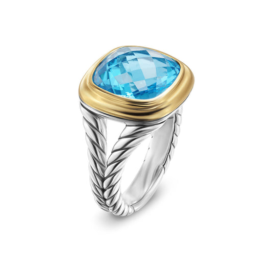 Albion® Ring in Sterling Silver with 18K Yellow Gold and Blue Topaz, 15mm