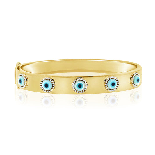 Evil Eye Stud Earrings with Blue Sapphires and Diamonds in 14K Yellow Gold