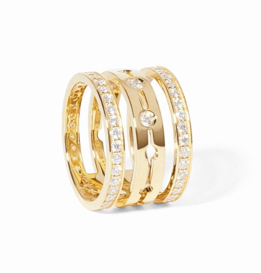 Gold Pulse Pave Diamond Three Row Ring