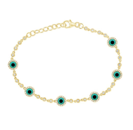 Turquoise and Diamond Evil Eye Chain Bracelet