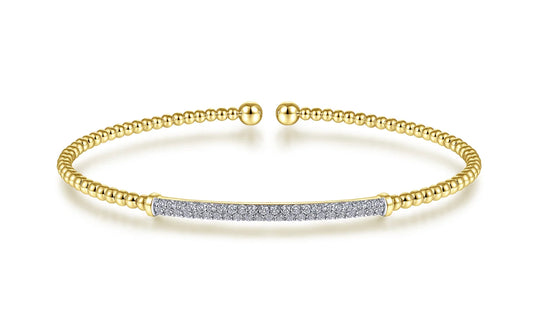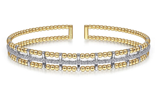 3-Row Beaded Cuff Bracelet with Diamond Pave