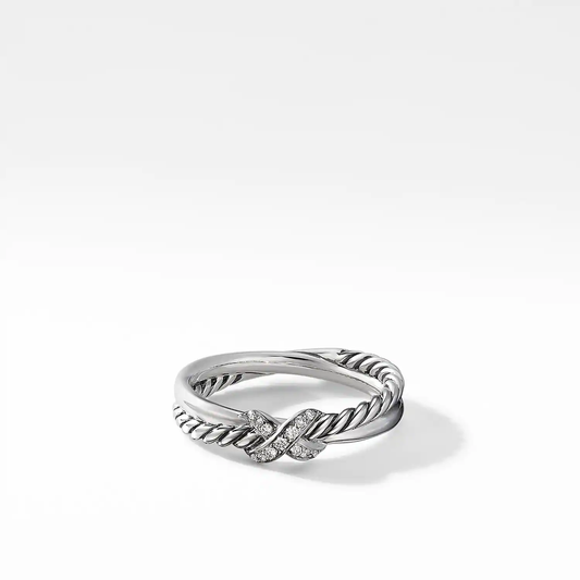 Petite X Ring with Pavé Diamonds