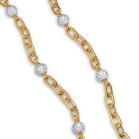 DY Madison® Pavé Bead Chain Necklace in 18K Yellow Gold with Diamonds, 6mm