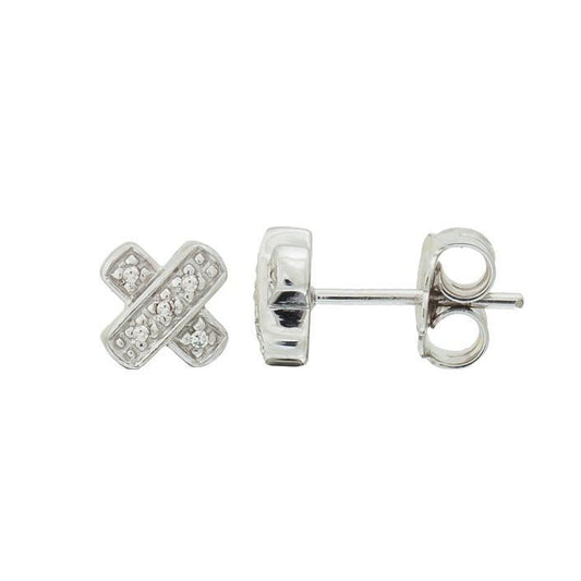 Silver Diamond "X" Earrings