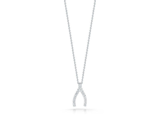 Tiny Treasures Diamond Wishbone Pendant in White Gold