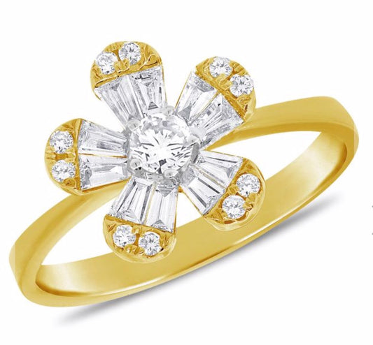 Baguette and Round Brilliant Cut Diamond Flower Ring in Yellow GoldVendor:MJ JardinRegular price $1,445 USDRegular priceUnit price / per-