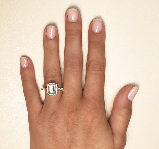 Emerald Cut Halo Setting with Diamonds in Shank