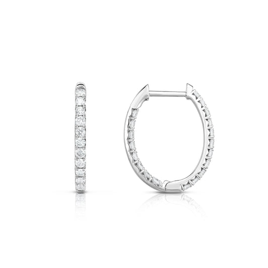14k White Gold Oval Hoops 3/4tw