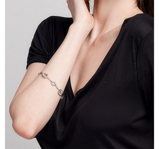 Silver 8-Stone Bangle in Clear Quartz