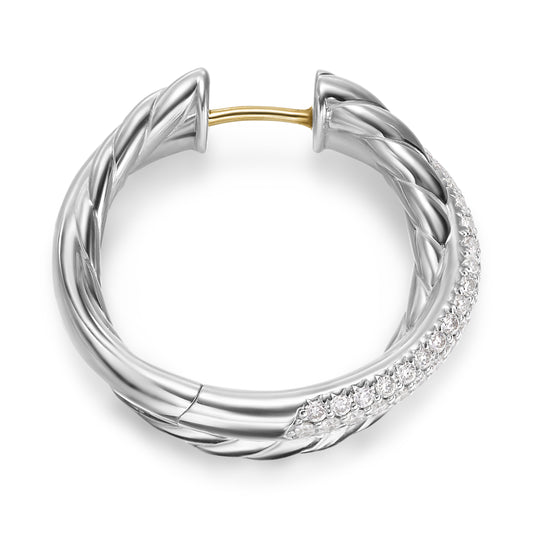 Crossover Hoop Earrings in Sterling Silver with Diamonds, 22.4mm