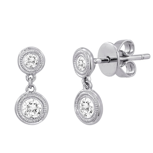 Bezel Drop Earrings in White Gold