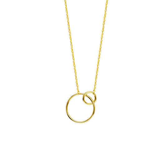 Chain Connected Double Stud Earring with Diamonds in Yellow Gold
