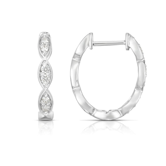 Gold Hoops with Diamond Set in Milgrain Bezel