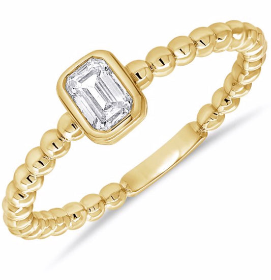 Bezel Set and Beaded Detail Emerald Cut Diamond Ring