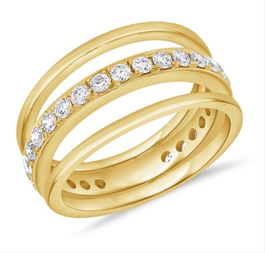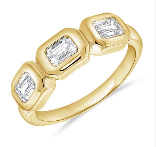 Three Stone Emerald Cut Bezel Set Diamond Ring