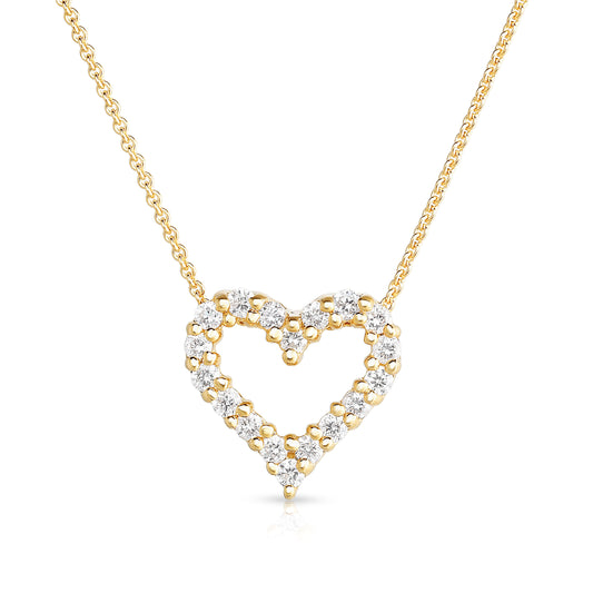 Small Diamond Outline Heart Pendant in Yellow Gold