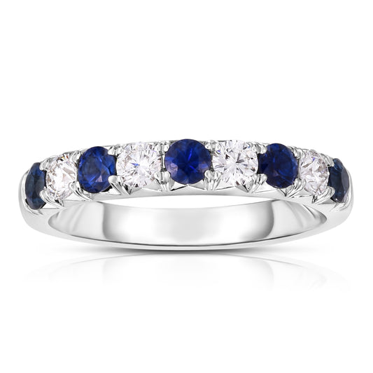 9-Stone French Cut Band with Alternating Blue Sapphires & Diamonds