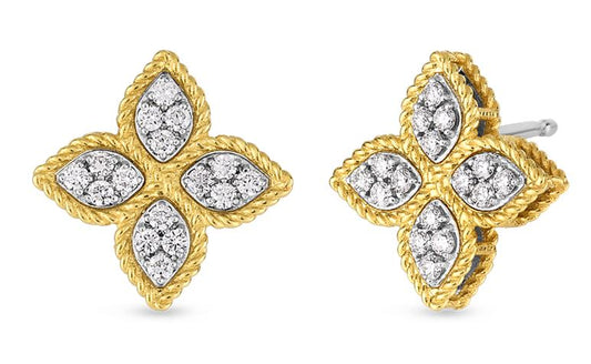 Princess Flower Diamond Stud Earrings in Gold