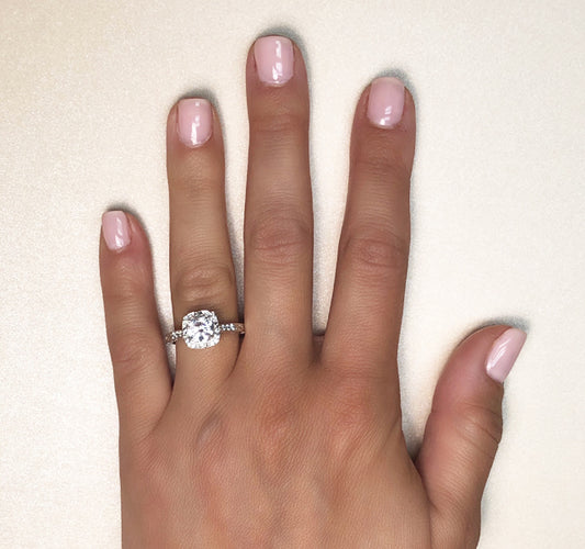 Round Cut Diamond in Cushion Halo Engagement Ring 1.50ct