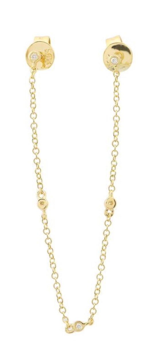 Chain Connected Double Stud Earring with Diamonds in Yellow Gold