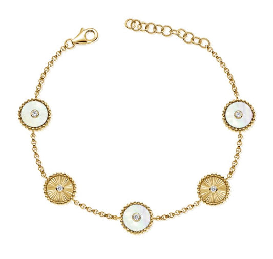 Bracelet with Mother of Pearl and Diamond Alternating Discs