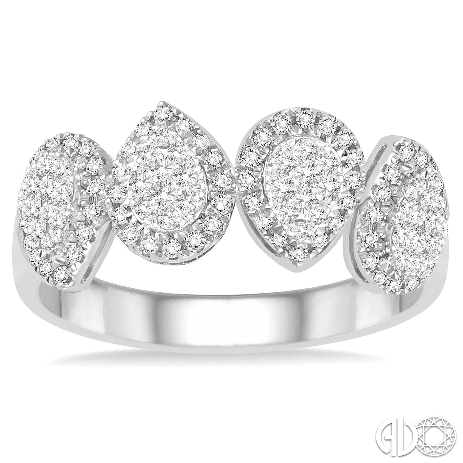 14K White Gold 4 Pear Shaped Diamond Cluster Band