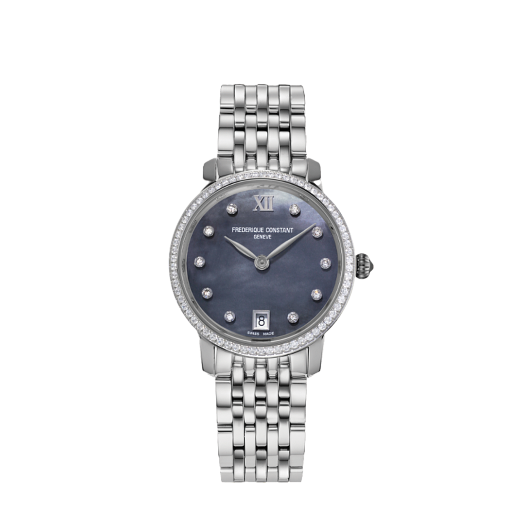30mm Slimline Ladies Quartz Watch with Black Mother of Pearl & Diamond Dial