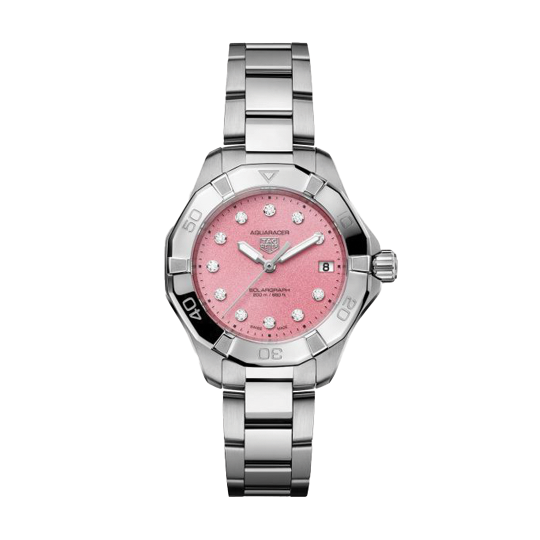 34mm Ladies Aquaracer Solargraph Watch with Pink Dial and Diamond Markers