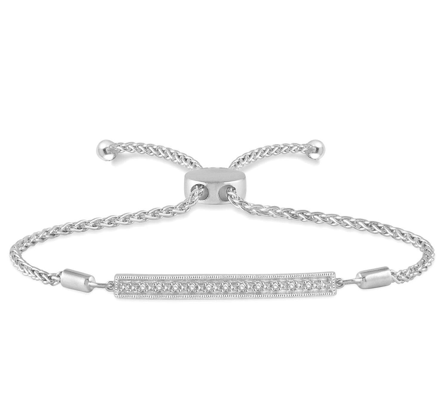 Adjustable Bolo Clasp Bracelet with Diamonds in Sterling Silver