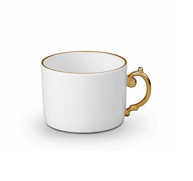L'Objet Aegean gold tea cup. Inspired by the Greco-Roman treasures of the ancient world and named for the sea stretching between Greece and Turkey, Aegean is derived from the Greek word “aiges,” meaning “waves.” The Aegean dinnerware collection features a decidedly classic motif, reimagined for contemporary tables.