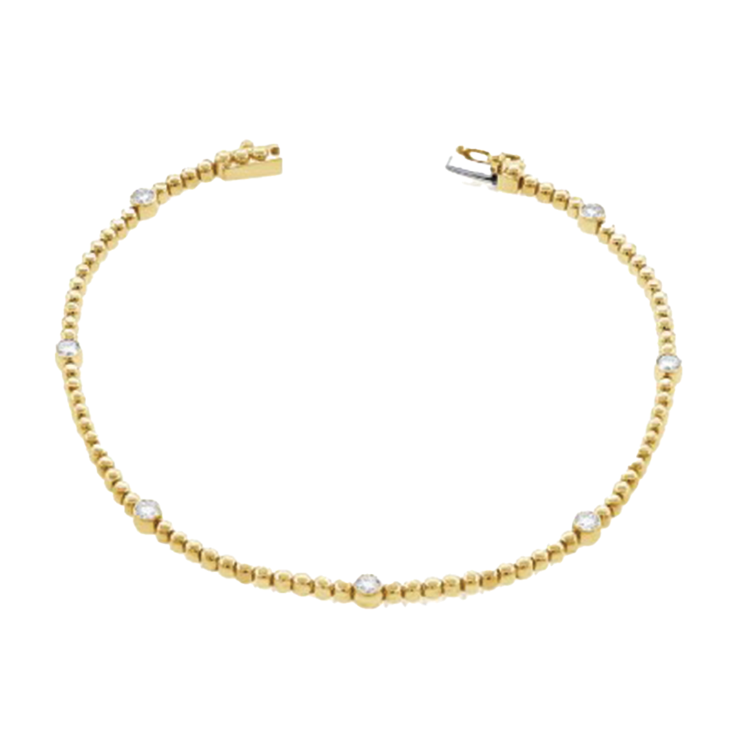 Beaded Bracelet with 7 Diamond Stations in 14K Yellow Gold