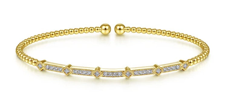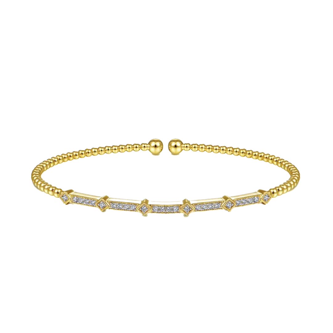 Beaded Diamond Bangle Bracelet with Milgrain Diamonds