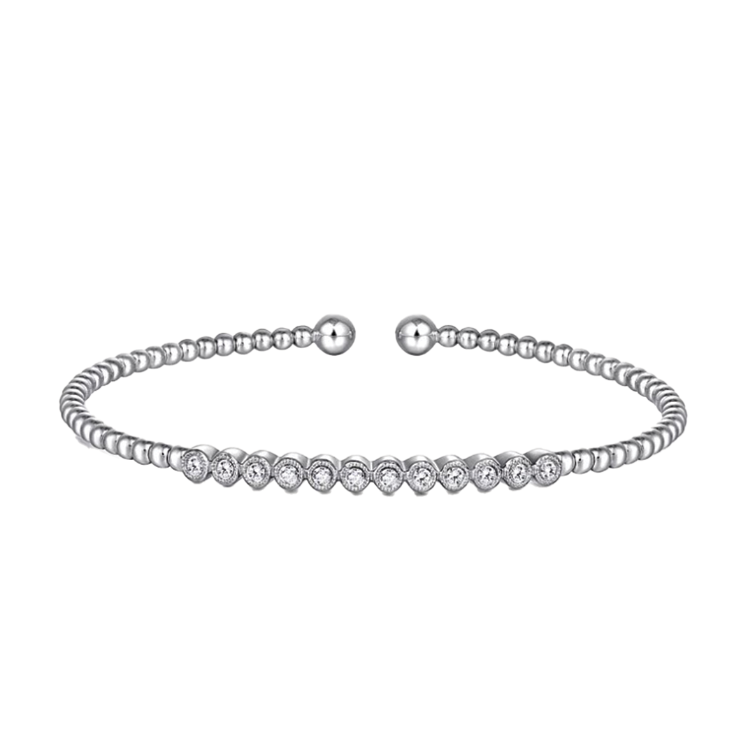 Beaded Diamond Bracelet with Milgrain Bezels in 14K White Gold
