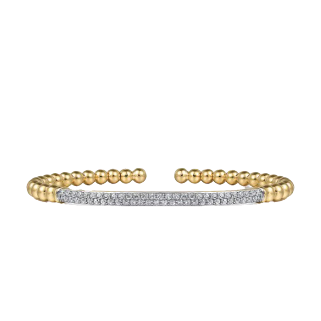 Beaded Split Bangle Bracelet with Pave Diamond Bar