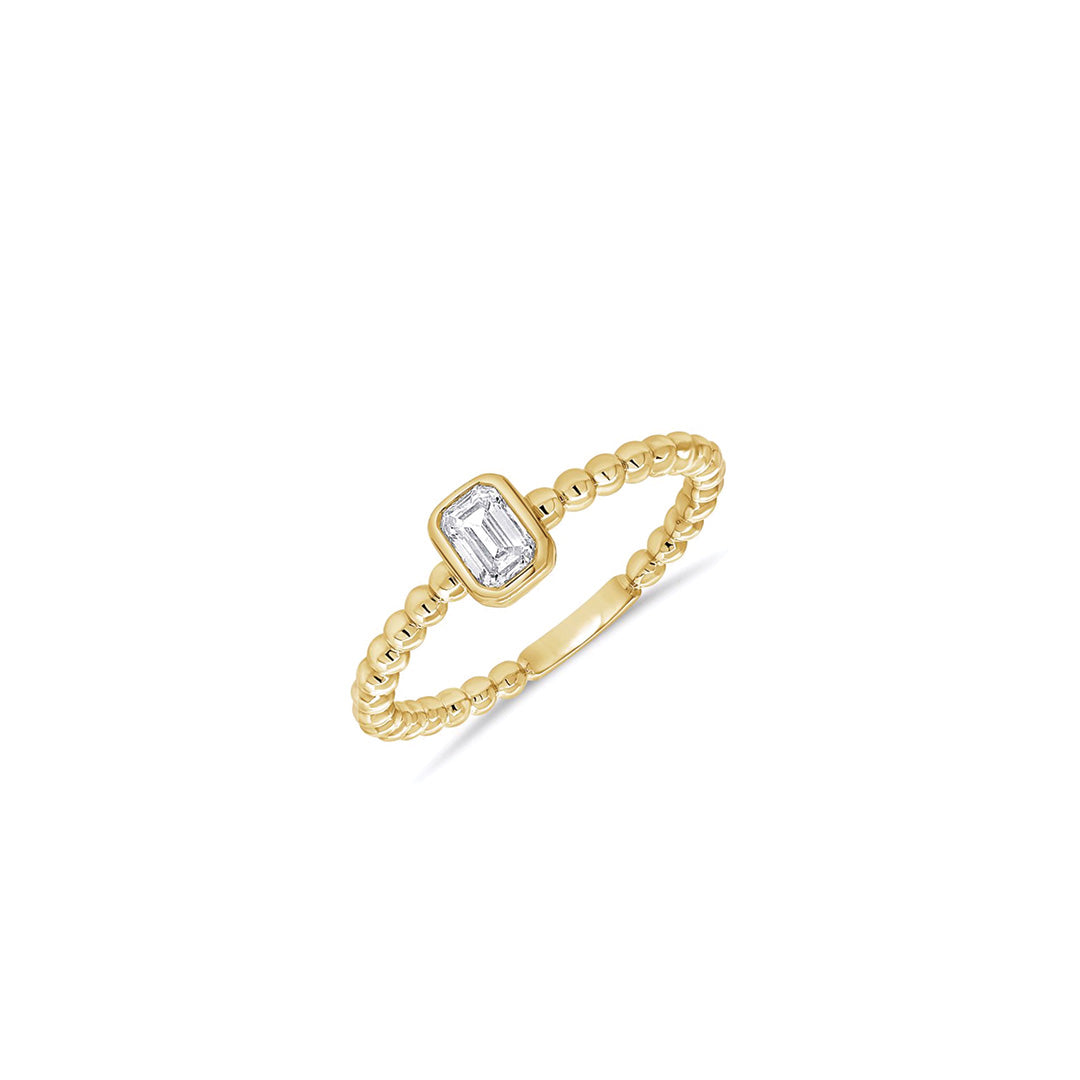 Bezel Set and Beaded Detail Emerald Cut Diamond Ring