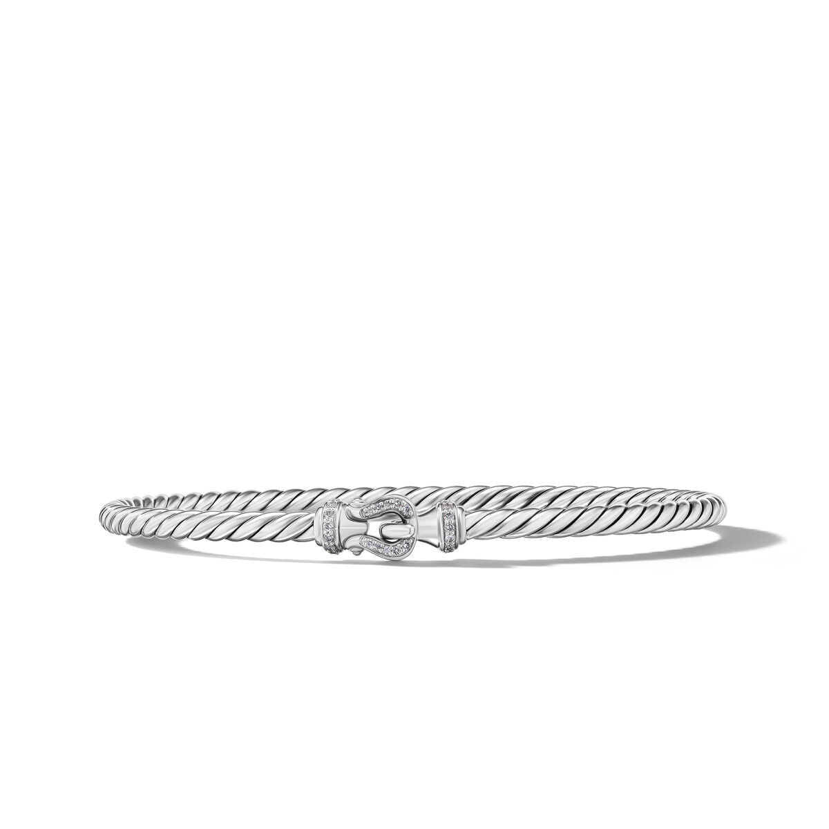 Buckle Classic Cable Bracelet in Sterling Silver with Diamonds, 3mm