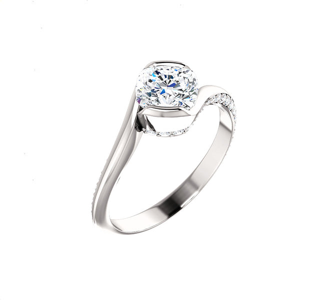 MJ Tried & True Setting for 6mm Round Center with accented by bead set diamonds.