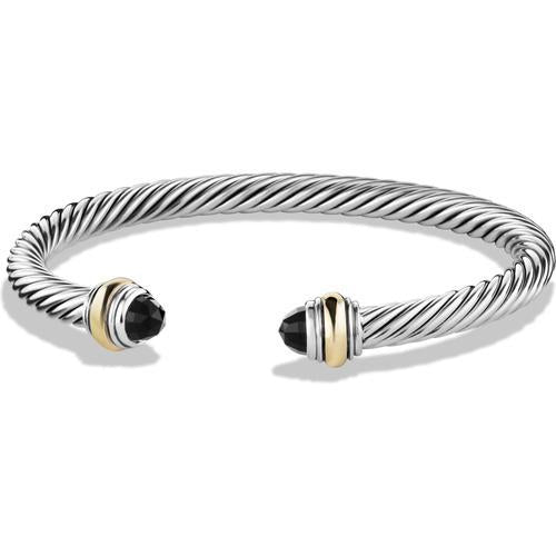 Sterling silver and 14-karat yellow gold • Faceted black onyx, • Cable, 5mm wide