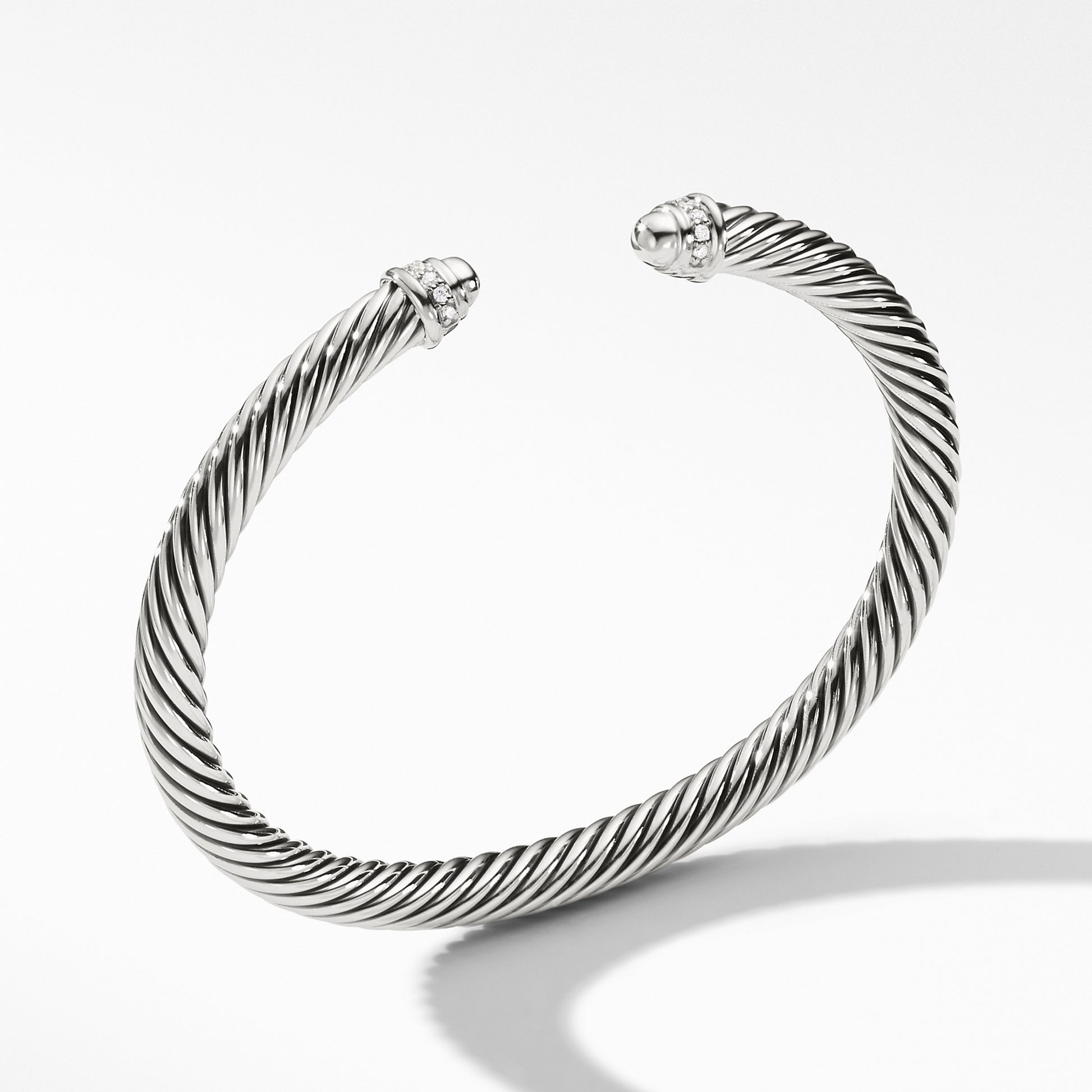 Sterling silver • Pavé diamonds, 0.07 total carat weight • Cable, 5mm wide