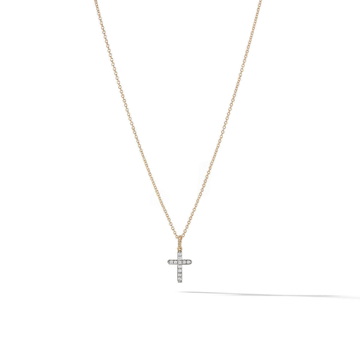 Cable Collectibles® Cross Necklace in 18K Yellow Gold with Pavé Diamonds