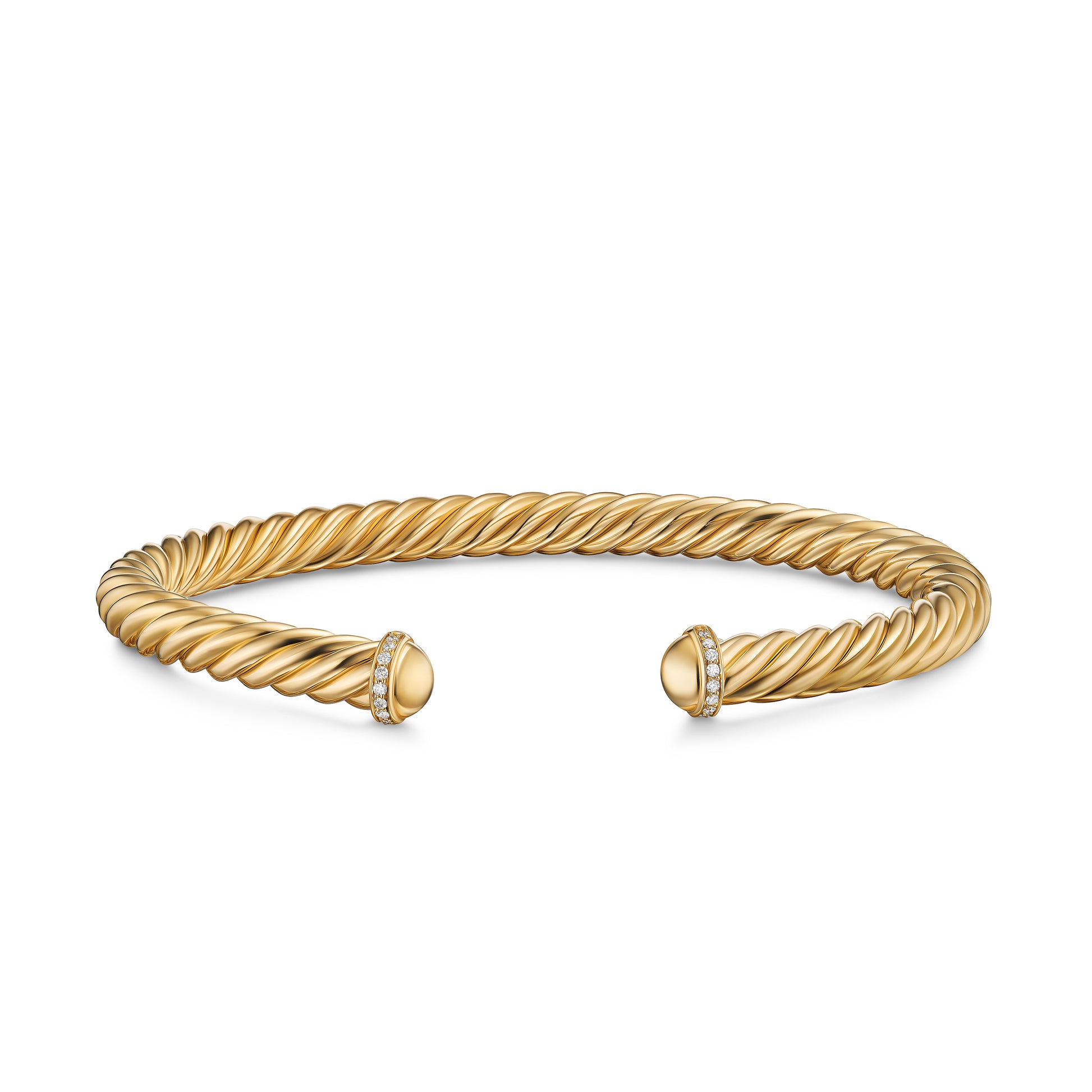 Cable Cuff Bracelet in 18K Yellow Gold with Pavé Diamonds, 6mm