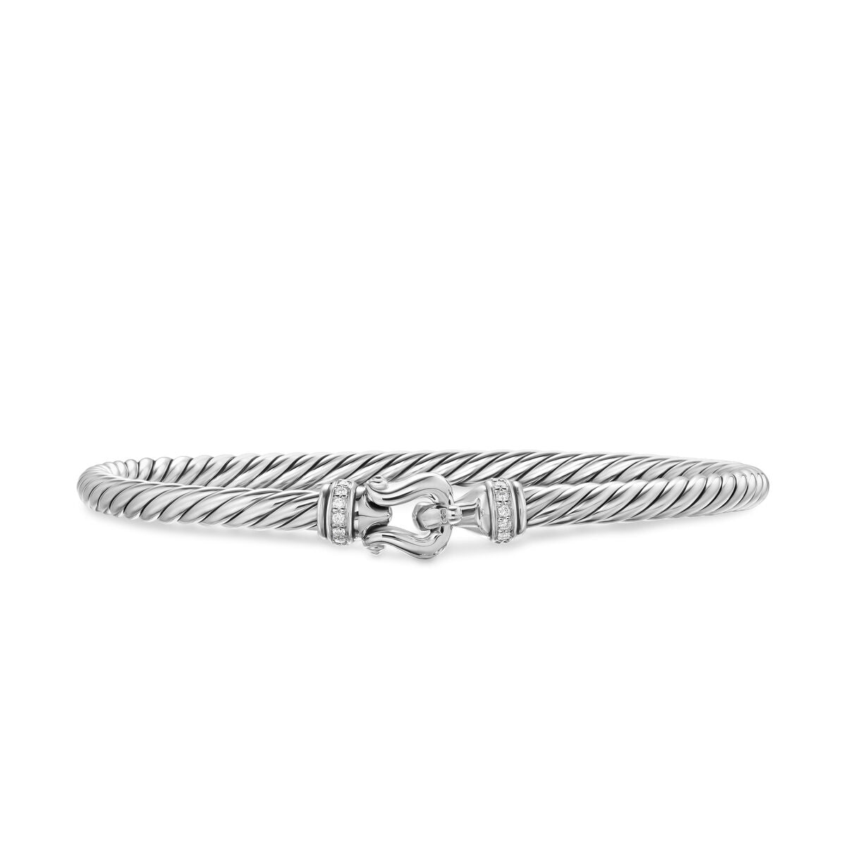 Cable Flex Buckle Bracelet in Sterling Silver with Diamonds, 4mm