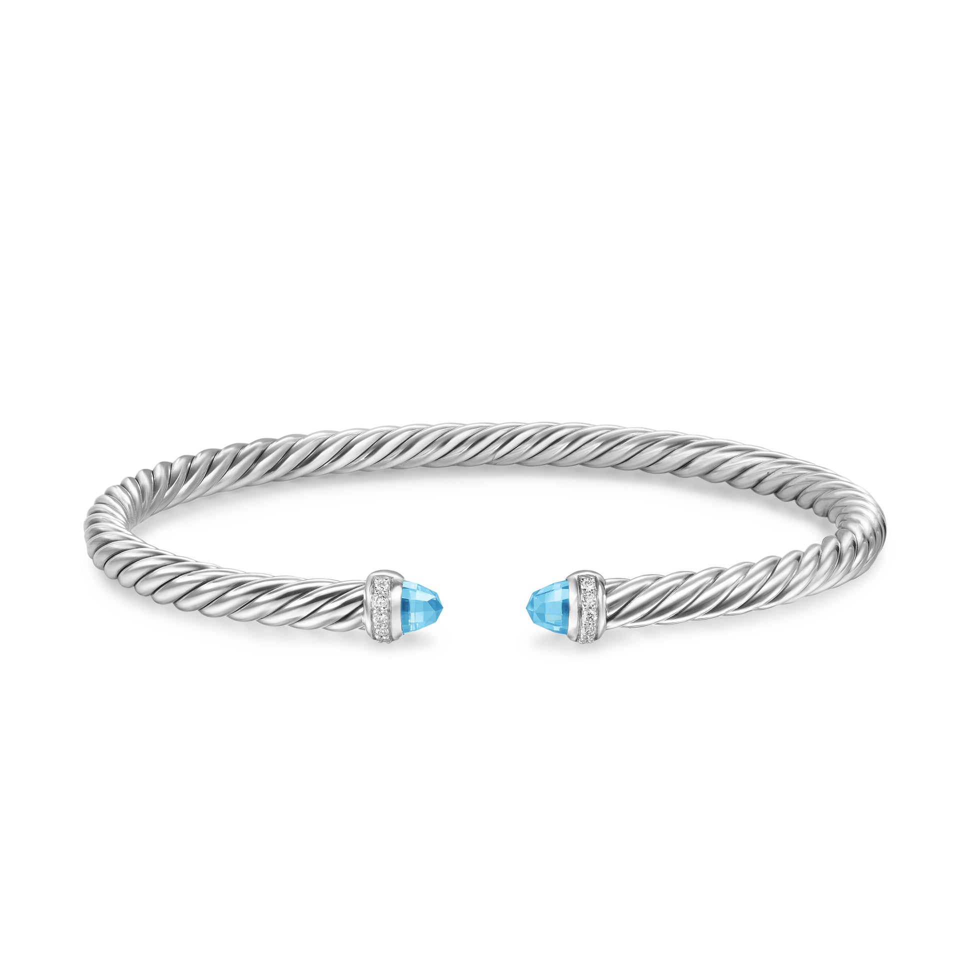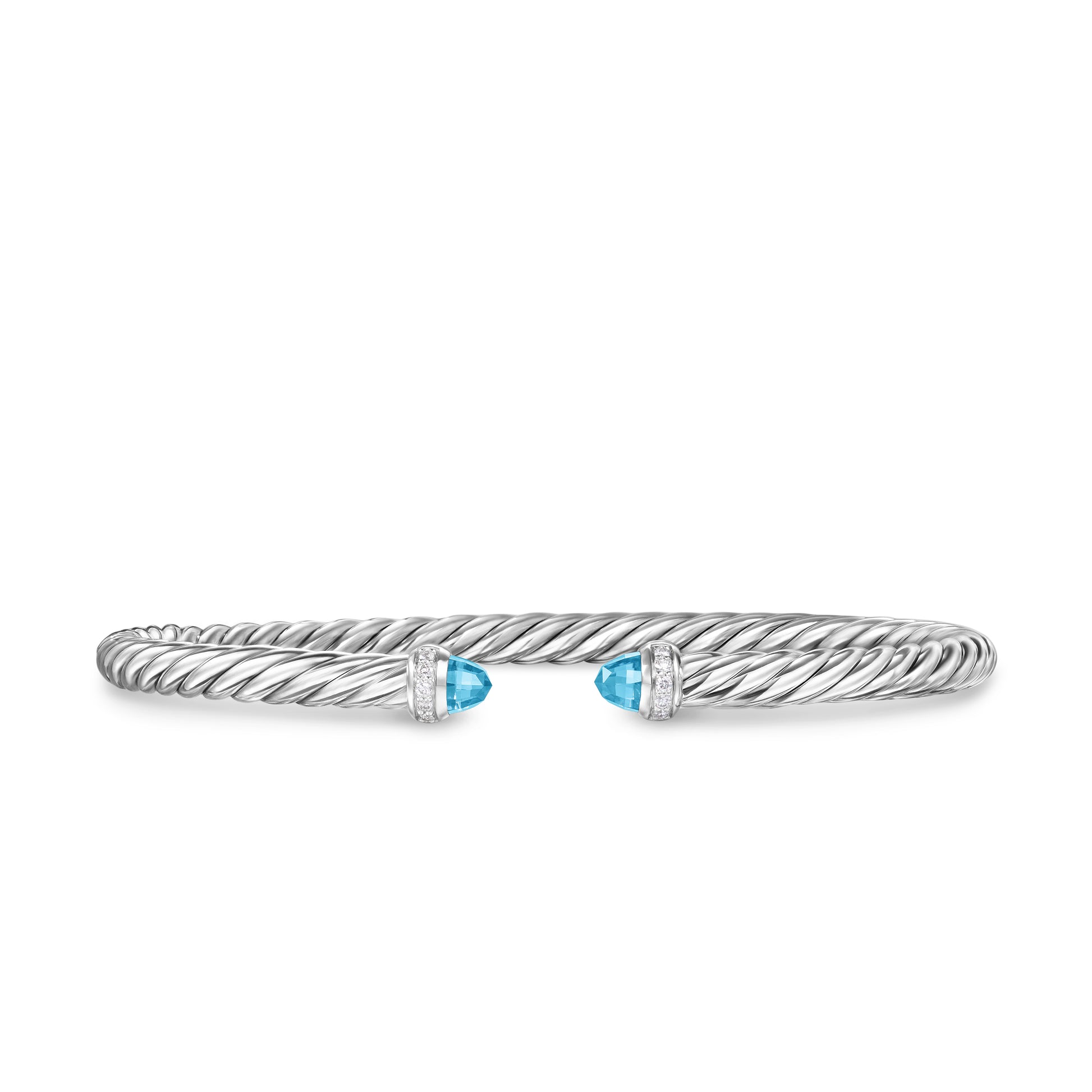 Sterling silver • Blue topaz, Pavé-set diamonds, 0.05 total carat weight • Bracelet, 4mm • Cablespira® is a patented DY construction that is highly flexible and exceptionally comfortable to wear.