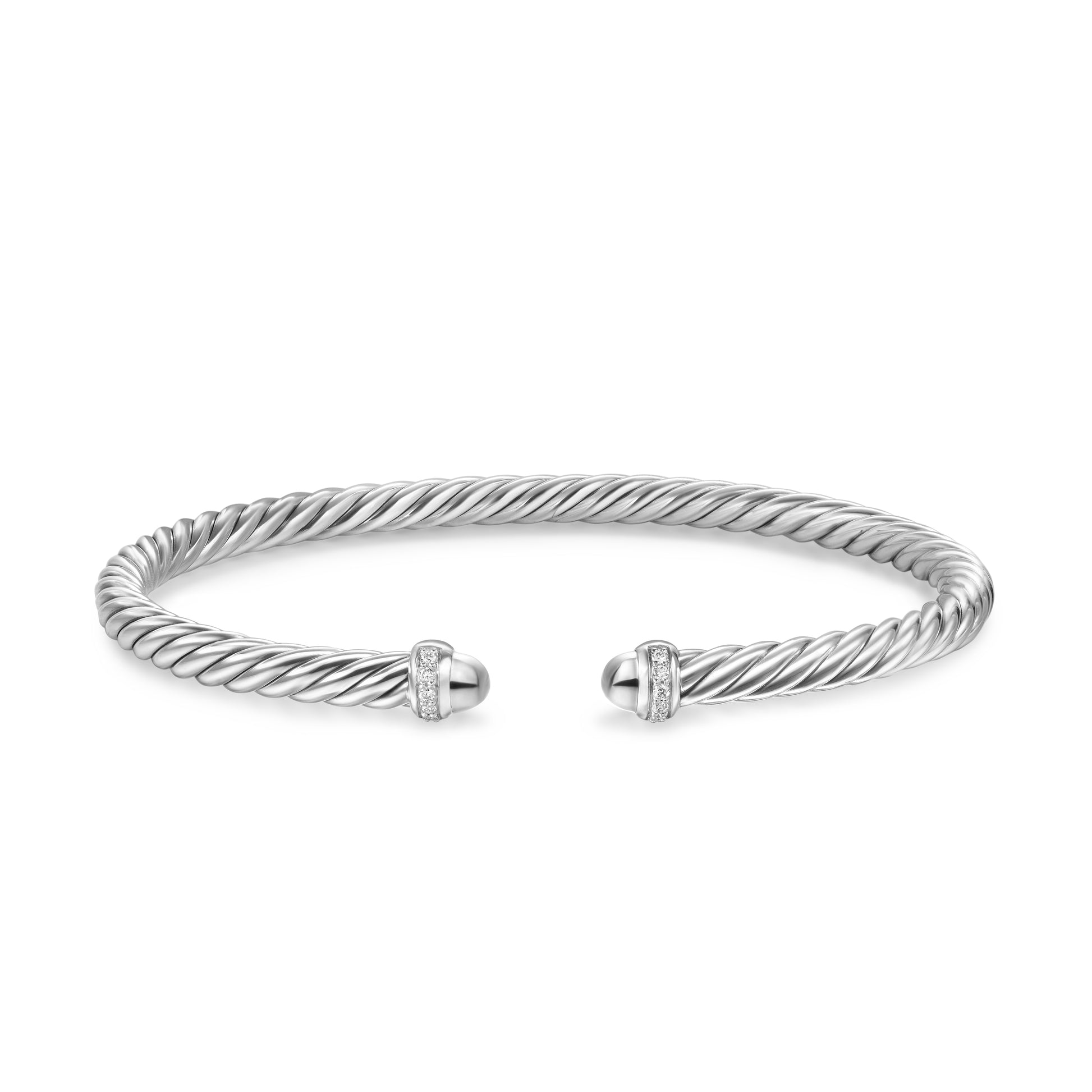 Sterling silver • Pavé-set diamonds, 0.05 total carat weight • Bracelet, 4mm • Cablespira® is a patented DY construction that is highly flexible and exceptionally comfortable to wear.