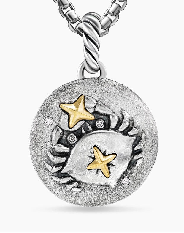 Cancer Amulet in Sterling Silver with 18K Yellow Gold and Diamonds, 19mm DESCRIPTION