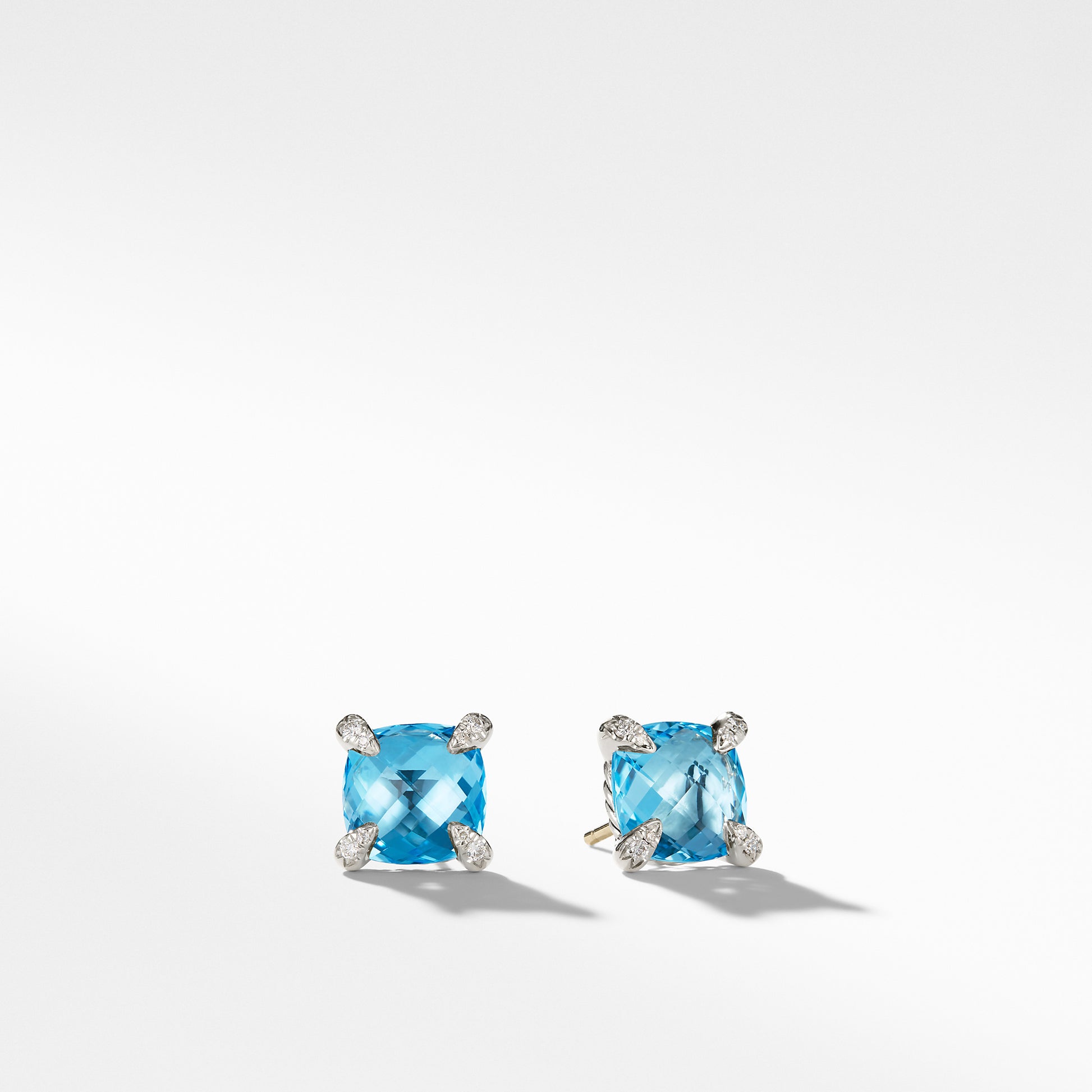 Chatelaine® Stud Earrings with Blue Topaz and Diamonds, 9mm