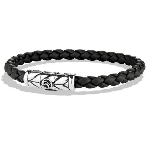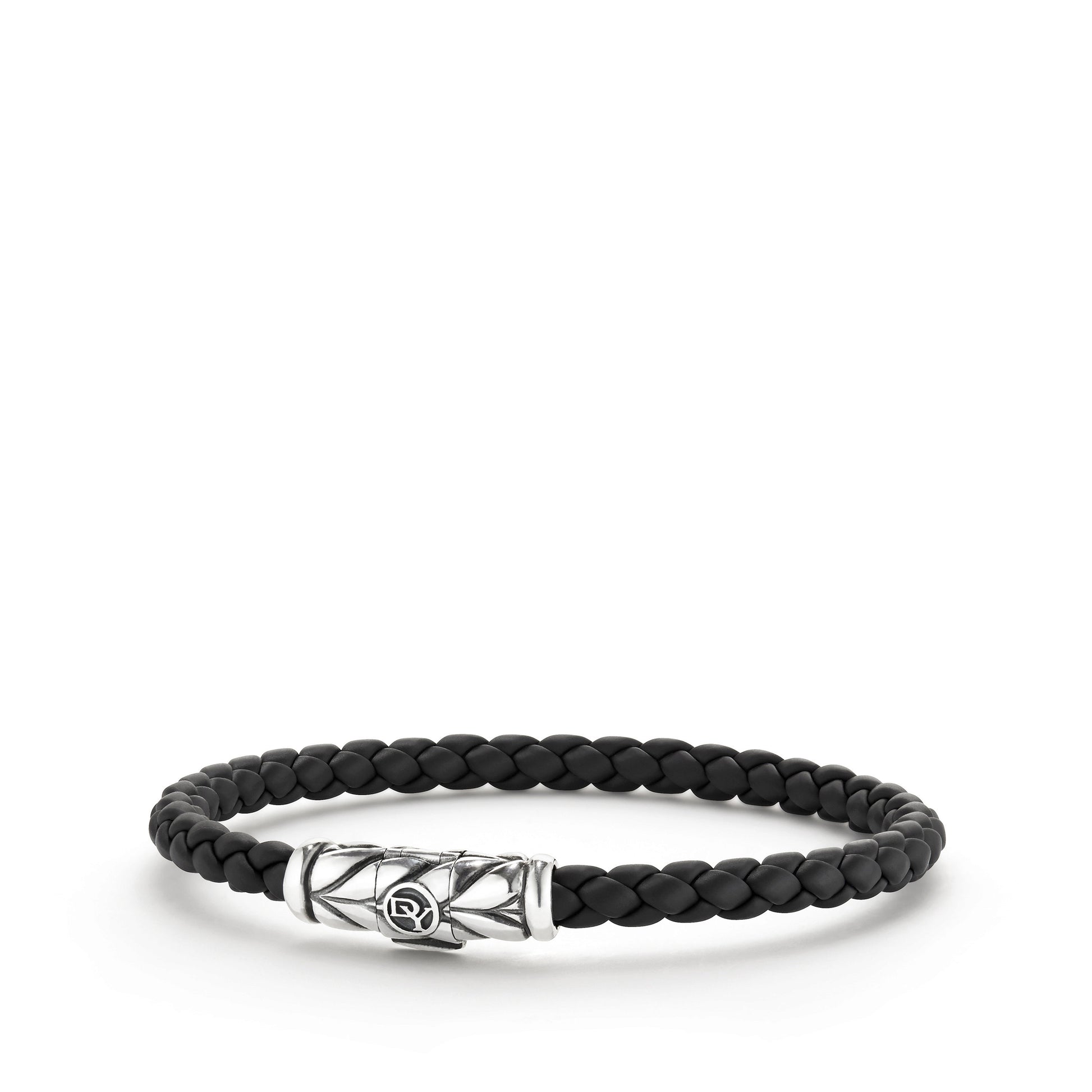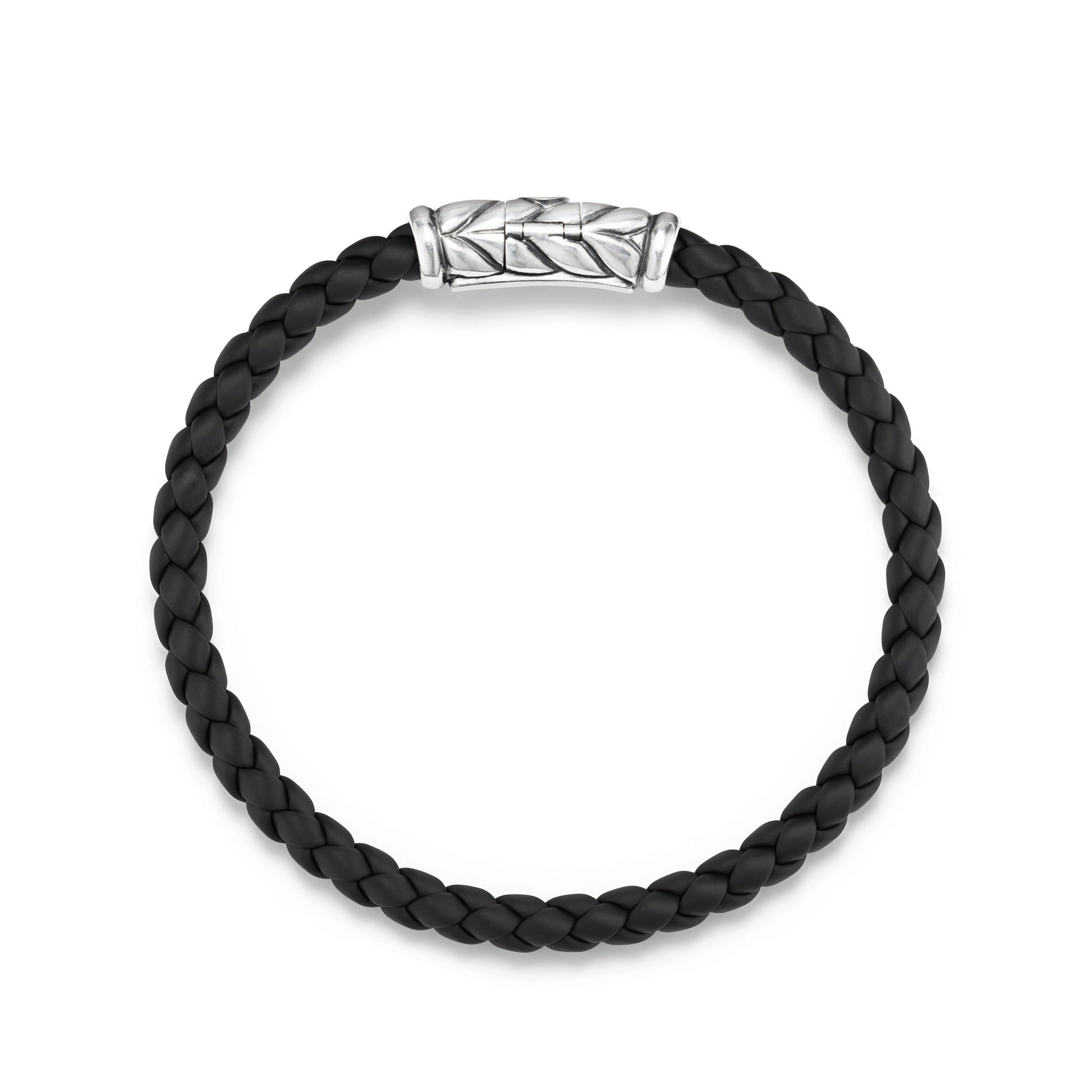 Sterling silver • Woven black rubber, 6mm wide • Magnetic clasp