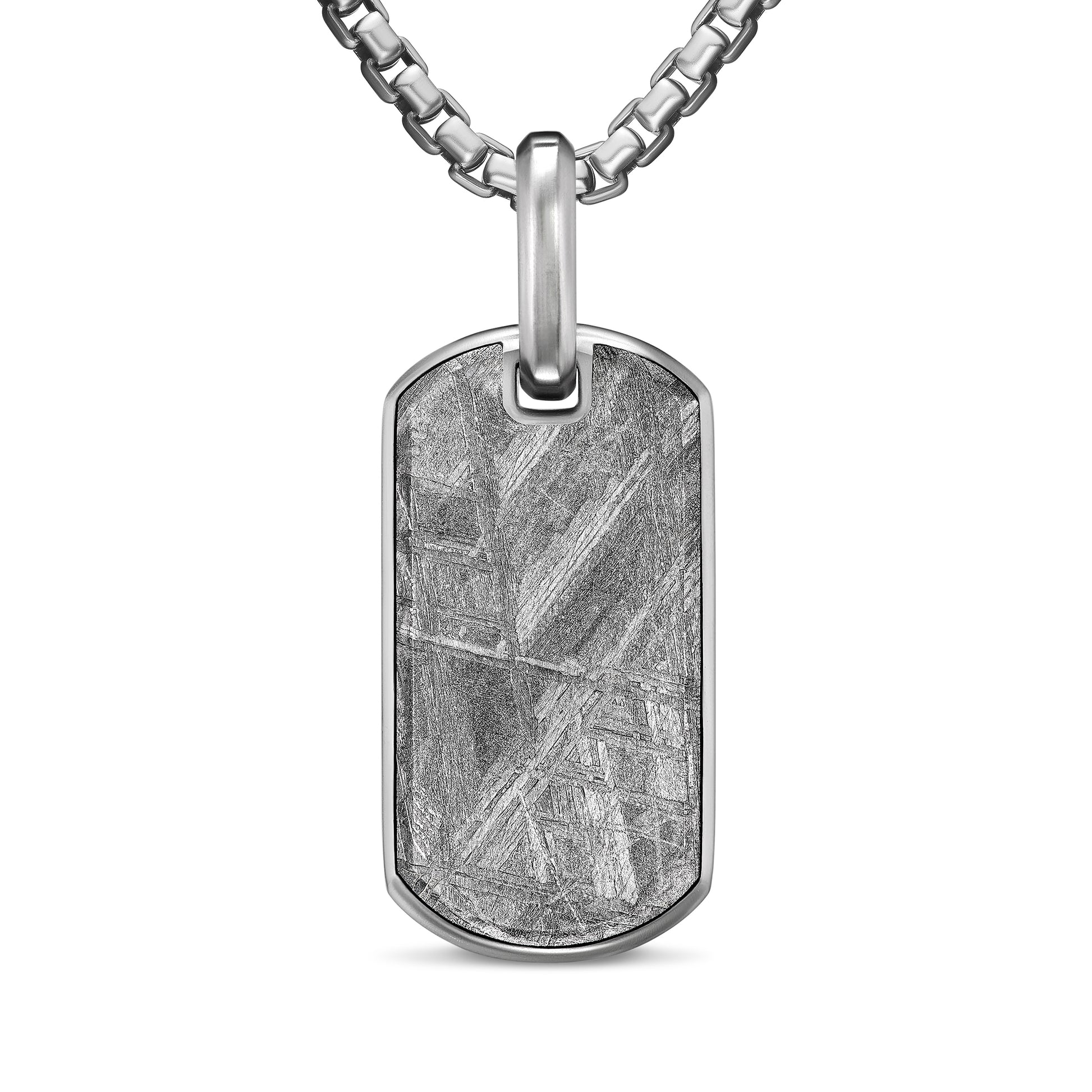 Sterling silver • Meteorite • Tag, 27 x 14.3mm • Total length, 38mm • Tag only; chain not included.