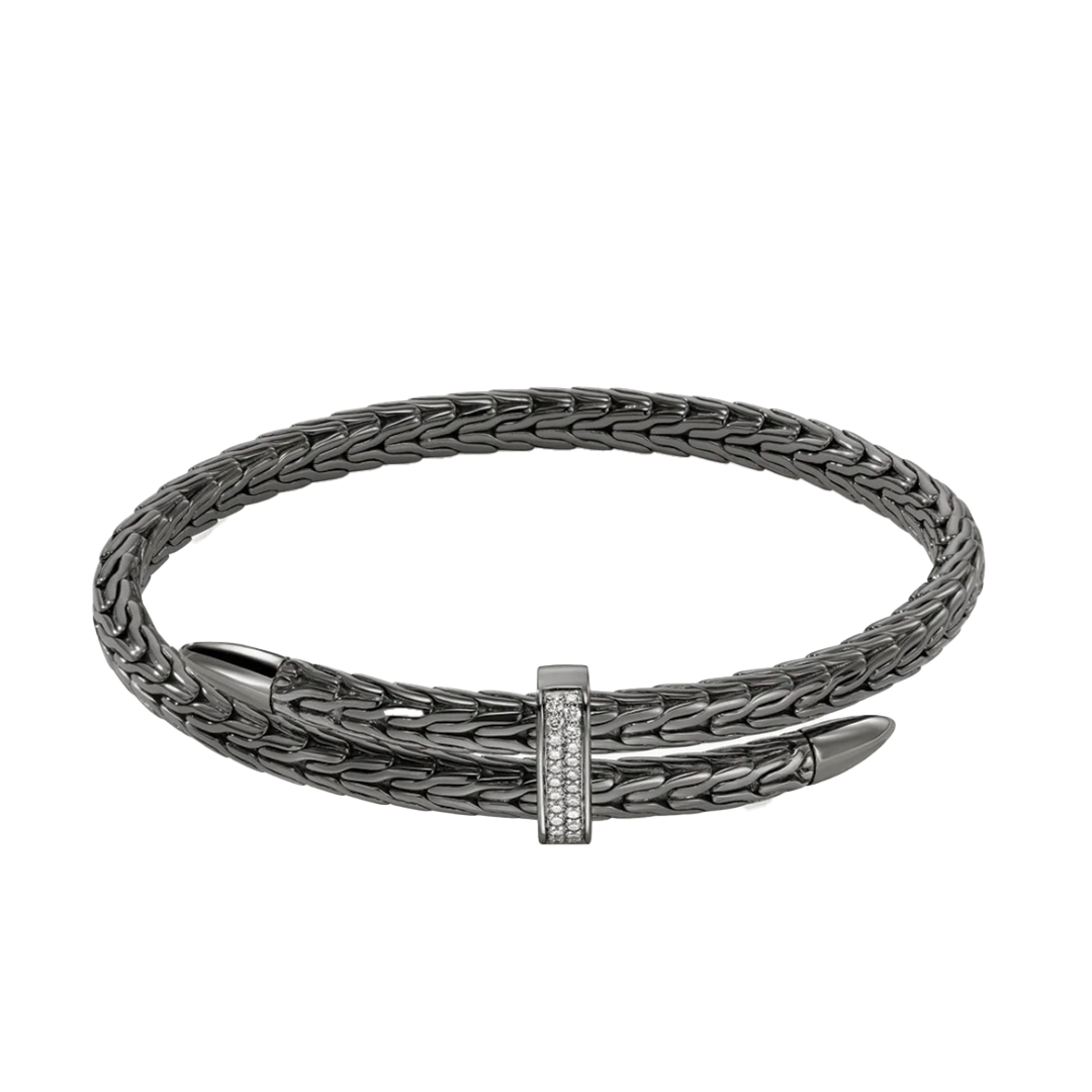 Dark Silver and Diamond Classic Chain Spear Bypass Flex Cuff Bracelet