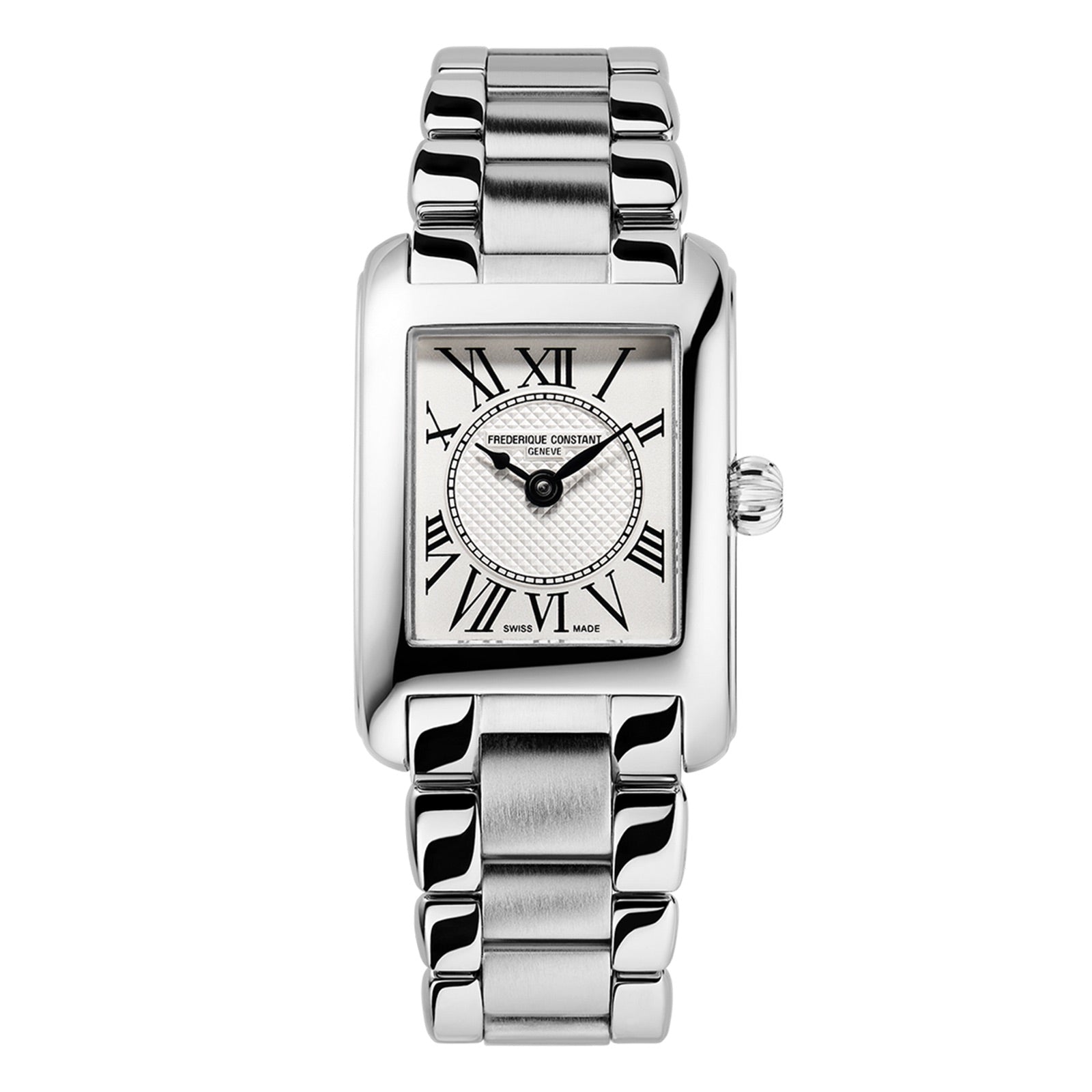 • Silver Colored dial with guilloche decoration, printed roman numerals and hand polished black hands